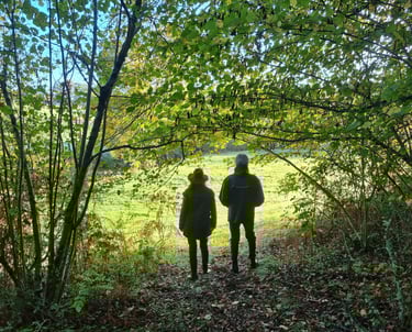 Muni d'un fascicule d'exercices d'attention, nous vous proposons de marcher en binôme sur les sentiers du domaine.